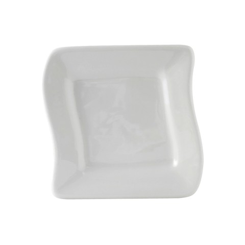 Wave Plate, 6-5/8" x 6-3/8", square, wide rim, wave edge, microwave & dishwasher safe, oven proof, fully vitrified, lead-free, DuraTux®©, Porcelain White