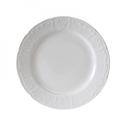 Plate, 7-7/8" dia., round, wide rim, embossed, microwave & dishwasher safe, oven proof, fully vitrified, lead-free, Chicago, Porcelain White