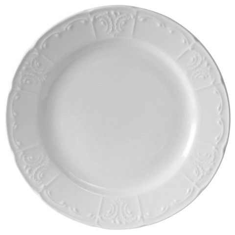 Plate, 11-1/8" dia., round, wide rim, embossed, microwave & dishwasher safe, oven proof, fully vitrified, lead-free, Chicago, Porcelain White