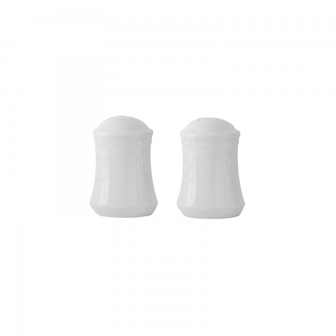 Salt & Pepper Set, 3"H, embossed, microwave & dishwasher safe, oven proof, fully vitrified, Chicago, lead-free, Porcelain White (12 sets per dozen)