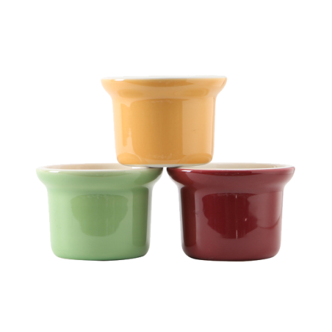 Petite Marmite, 8 oz., 4" dia. x 2-7/8"H, round, microwave & dishwasher safe, oven proof, fully vitrified, lead-free, ceramic, DuraTux®©, assorted colors: Butterscotch Cranberry & Pistachio
