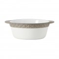Casserole Dish, 3-1/2 qt., 12" dia. x 4"H (10" dia. without handle), round, without lid, embossed, microwave & dishwasher safe, oven proof, fully vitrified, lead-free, DisplayTux®©, Porcelain White with Black Truffle Band