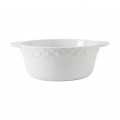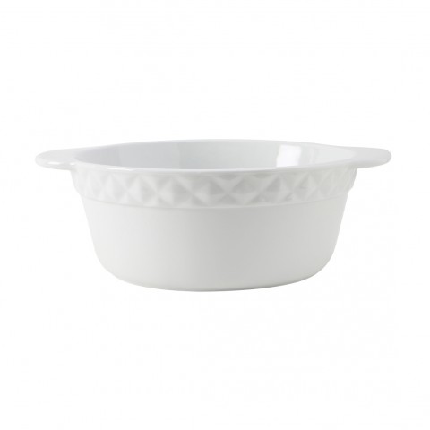 Casserole Dish, 3-1/2 qt., 12" dia. x 4"H (10" dia. without handle), round, without lid, embossed, microwave & dishwasher safe, oven proof, fully vitrified, lead-free, DisplayTux®©, Porcelain White with White Band