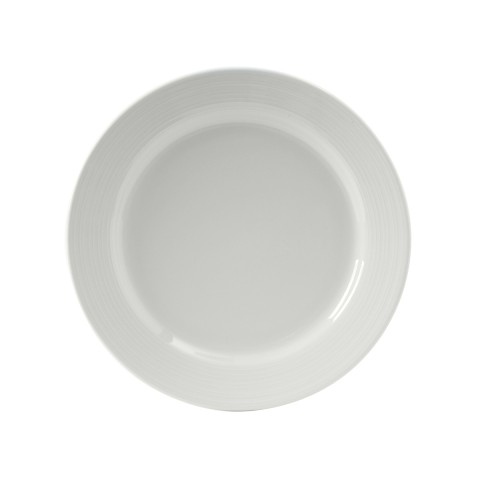 Plate 11" dia., round, microwave & dishwasher safe, oven proof, embossed edge, fully vitrified, lead-free, Pacifica, Porcelain White