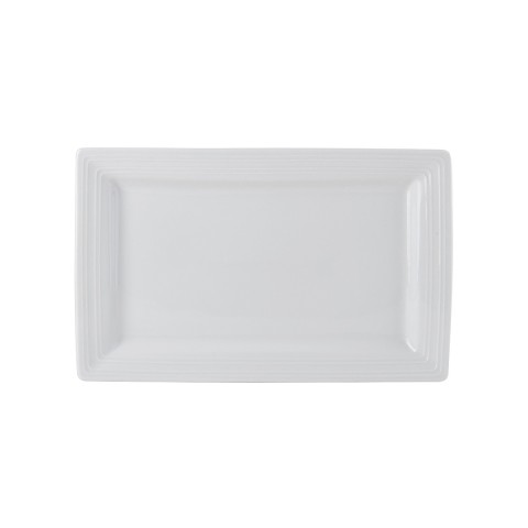 Plate, 11" x 6-7/8", rectangular, microwave & dishwasher safe, oven proof, embossed edge, fully vitrified, lead-free, Pacifica, Porcelain White