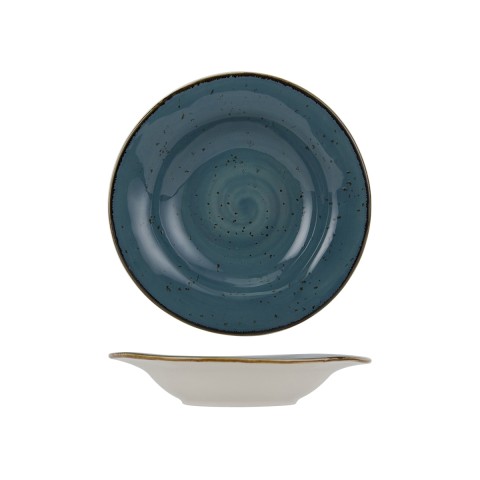 Soup Bowl, 9-1/2 oz., 9" dia., round, rimmed, microwave & dishwasher safe, oven proof, fully vitrified, lead-free, porcelain, TuxTrendz®©, Artisan Geode, Azure