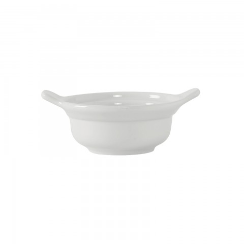 Mini Casserole Dish, 8 oz., 4-3/4" dia. x 2-3/8"H, round, with (2) lug handles, microwave & dishwasher safe, oven proof, fully vitrified, lead-free, TuxTrendz, LINX, Porcelain White