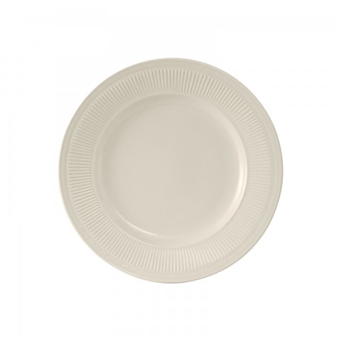 Plate, 6-1/2" dia., round, wide rim, embossed, microwave & dishwasher safe, oven proof, fully vitrified, lead-free, ceramic, Hampshire, American White/Eggshell