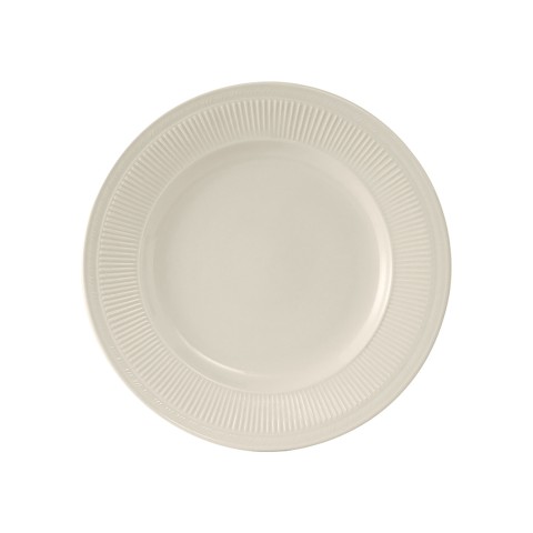 Plate, 7" dia., round, wide rim, embossed, microwave & dishwasher safe, oven proof, fully vitrified, lead-free, ceramic, Hampshire, American White/Eggshell
