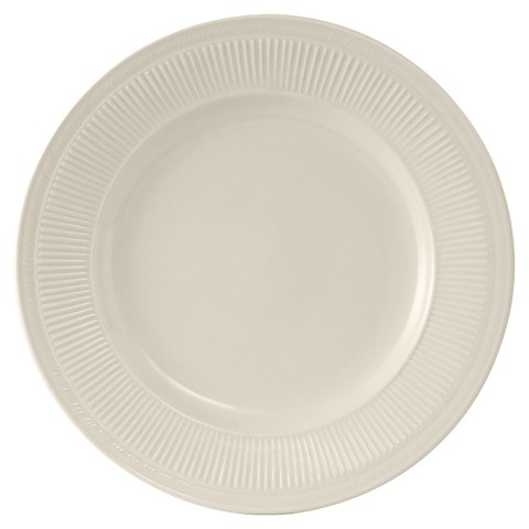 Plate, 11" dia., round, wide rim, embossed, microwave & dishwasher safe, oven proof, fully vitrified, lead-free, ceramic, Hampshire, American White/Eggshell