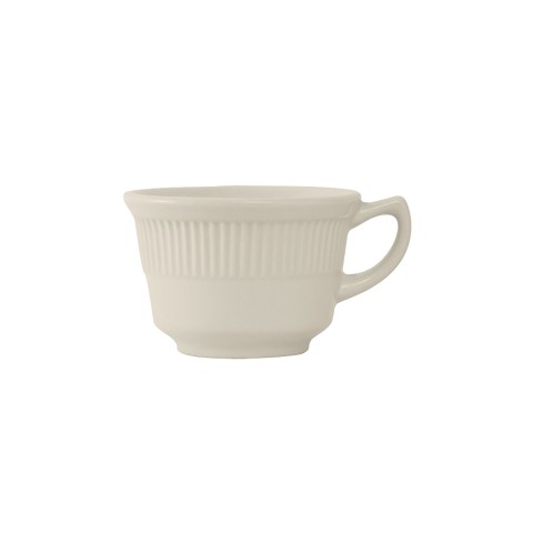 Cup, 7 oz., 3-3/4" dia. x 2-1/2"H, embossed, microwave & dishwasher safe, oven proof, fully vitrified, lead-free, ceramic, Hampshire, American White/Eggshell