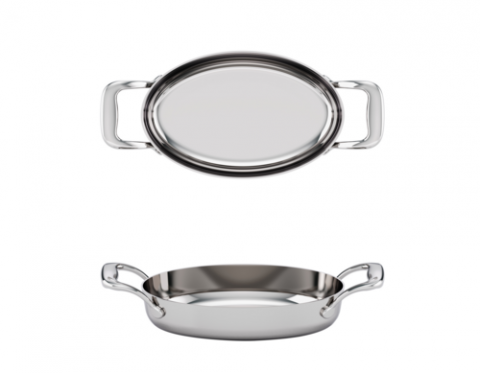 TuxCLAD 8-Inch Oval Pan, 22-Fluid Ounce, 5.0"W x 8.0"L x 1.5"H, Triply, Solid Stainless Steel Handle, Riveted (Refer to Tuxton.com for Full Warranty Policy) *Special Order Item