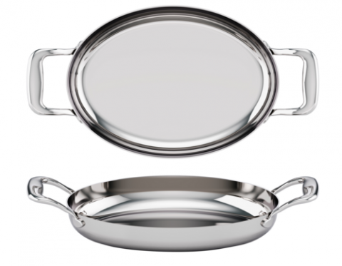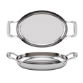 TuxCLAD 12-Inch Oval Pan, 60-Fluid Ounce, 8.0"W x 11.75"L x 1.75"H, Triply, Solid Stainless Steel Handle, Riveted (Refer to Tuxton.com for Full Warranty Policy) *Special Order Item