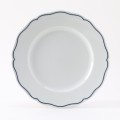 Plate, 9" dia., round, scalloped edge, microwave & dishwasher safe, oven proof, fully vitrified, lead-free, porcelain, TuxTrendz®©, Charleston, Porcelain White with Blue Band