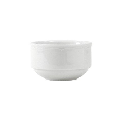 Bouillon, 8 oz., 3-3/4" dia. x 2-1/4"H, round, scalloped, stackable, microwave & dishwasher safe, oven proof, fully vitrified, lead-free, porcelain, TuxTrendz®©, Charleston, Porcelain White