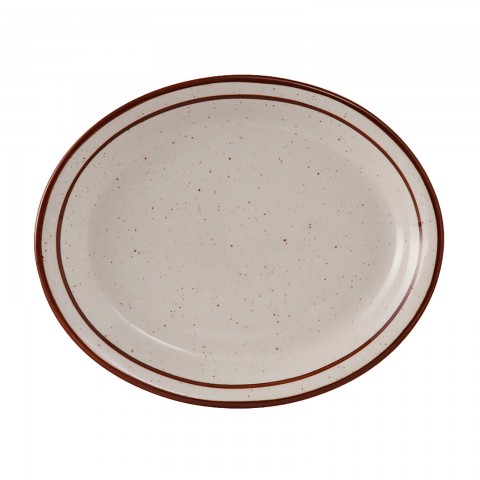 Platter, 9-1/2" x 7-1/2", oval, narrow rim, microwave & dishwasher safe, oven proof, fully vitrified, lead-free, ceramic, Bahamas, American White/Eggshell with Brown Speckle