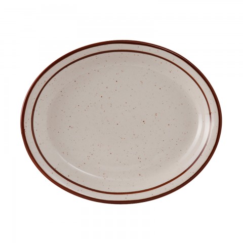 Platter, 13-1/4" x 10-1/2", oval, narrow rim, microwave & dishwasher safe, oven proof, fully vitrified, lead-free, ceramic, Bahamas, American White/Eggshell with Brown Speckle