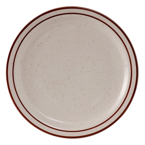 Plate, 10-1/2" dia., round, narrow rim, microwave & dishwasher safe, oven proof, fully vitrified, lead-free, ceramic, Bahamas, American White/Eggshell with Brown Speckle