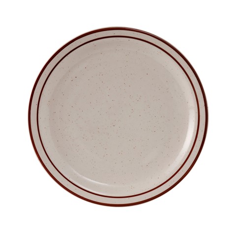 Plate, 8-1/8" dia., round, narrow rim, microwave & dishwasher safe, oven proof, fully vitrified, lead-free, ceramic, Bahamas, American White/Eggshell with Brown Speckle