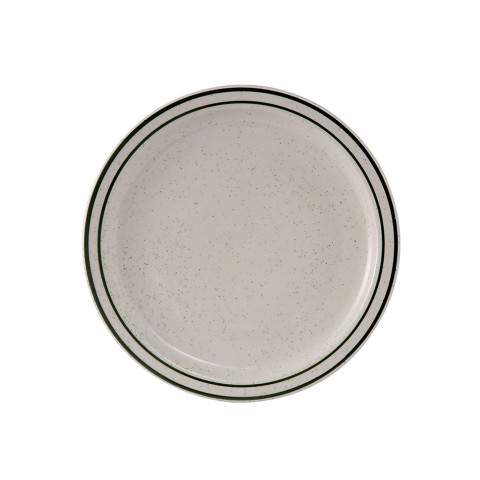 Plate, 6-1/2" dia., round, narrow rim, microwave & dishwasher safe, oven proof, fully vitrified, lead-free, ceramic, TuxCare®©, Healthcare, Emerald, American White/Eggshell with Green Speckle