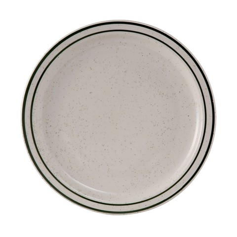 Plate, 9" dia., round, narrow rim, microwave & dishwasher safe, oven proof, fully vitrified, lead-free, ceramic, TuxCare®©, Healthcare, Emerald, American White/Eggshell with Green Speckle