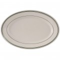 Platter, 11-5/8" x 8", oval, wide rim, rolled edge, microwave & dishwasher safe, oven proof, fully vitrified, lead-free, ceramic, Green Bay, American White/Eggshell with Green Band