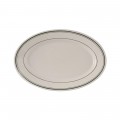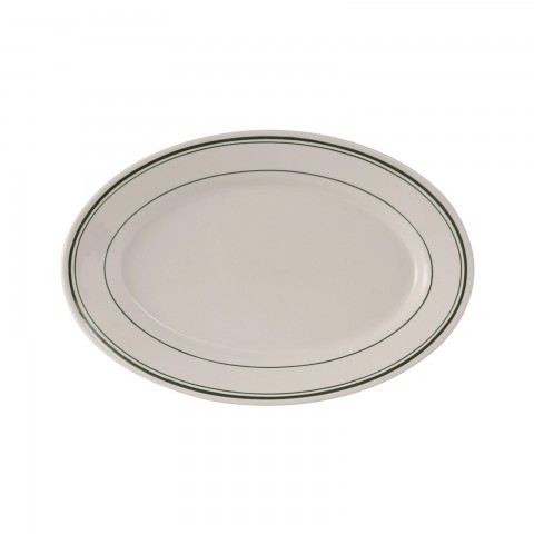 Platter, 8-1/4" x 5-3/4", oval, wide rim, rolled edge, microwave & dishwasher safe, oven proof, fully vitrified, lead-free, ceramic, Green Bay, American White/Eggshell with Green Band