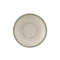 Demitasse Saucer, 5" dia., coupe, wide rim, rolled edge, microwave & dishwasher safe, oven proof, fully vitrified, lead-free, ceramic, Green Bay, American White/Eggshell with Green Band
