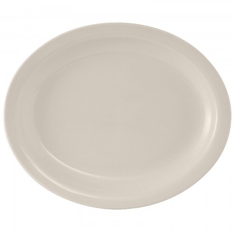 Platter, 11-1/2" x 9-1/8", oval, narrow rim, microwave & dishwasher safe, oven proof, fully vitrified, lead-free, ceramic, Nevada, American White/Eggshell