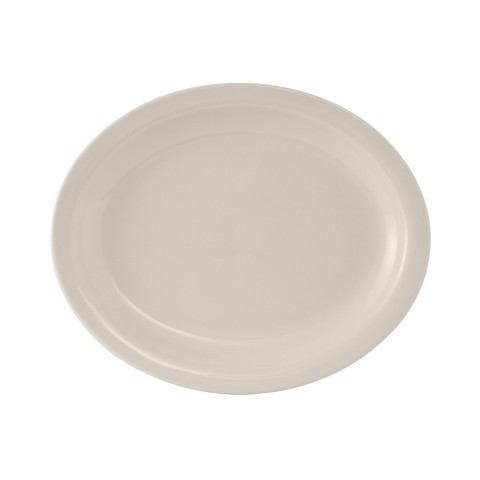 Platter, 12-1/2" x 10-1/4", oval, narrow rim, microwave & dishwasher safe, oven proof, fully vitrified, lead-free, ceramic, Nevada, American White/Eggshell