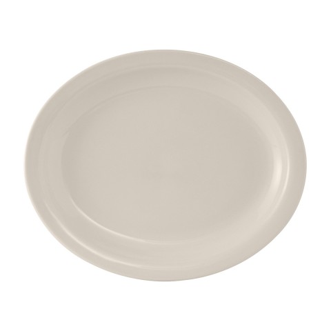 Platter, 13-3/4" x 11-1/4", oval, narrow rim, microwave & dishwasher safe, oven proof, fully vitrified, ceramic, Nevada, American White/Eggshell