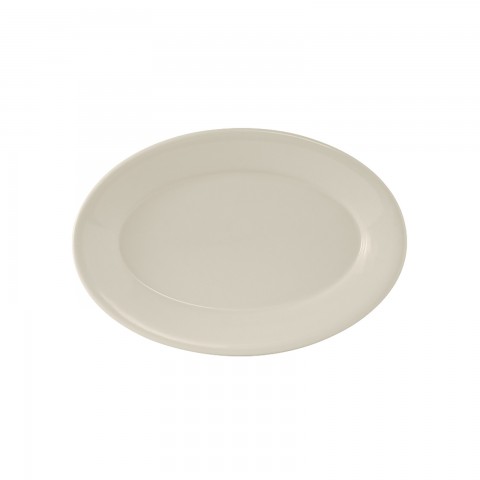 Platter, 7" x 4-5/8", oval, wide rim, rolled edge, microwave & dishwasher safe, oven proof, fully vitrified, lead-free, ceramic, Reno, American White/Eggshell