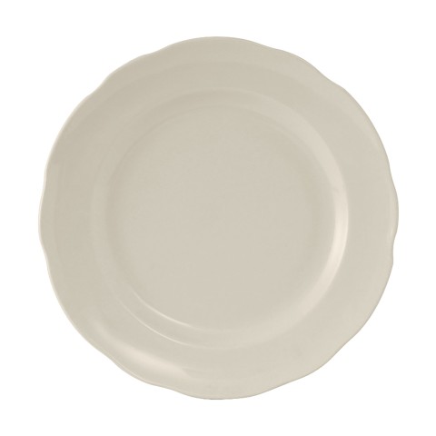 Plate, 9" dia., round, scalloped edge, microwave & dishwasher safe, oven proof, fully vitrified, lead-free, ceramic, Shell, American White/Eggshell