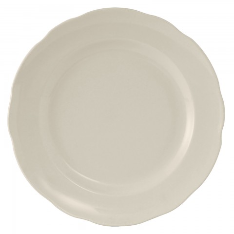 Plate, 10-7/8" dia., round, scalloped edge, microwave & dishwasher safe, oven proof, fully vitrified, lead-free, ceramic, Shell, American White/Eggshell