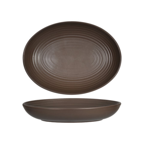 Bowl, 35oz, oval, embossed, microwave & dishwasher safe, oven proof, fully vitrified, lead-free, porcelain, TuxTrendz®©, Zion, matte brown (Refer to Tuxton.com for Full Warranty Policy)
