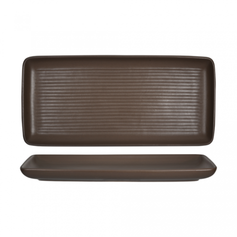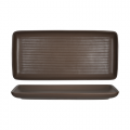Tray, 14", rectangular, embossed, microwave & dishwasher safe, oven proof, fully vitrified, lead-free, porcelain, TuxTrendz®©, Zion, matte brown (Refer to Tuxton.com for Full Warranty Policy)
