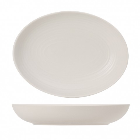 Bowl, 35 oz., 10-3/4" x 8" x 1-7/8"H, oval, embossed, microwave & dishwasher safe, oven proof, fully vitrified, lead-free, porcelain, TuxTrendz®©, Zion, matte white
