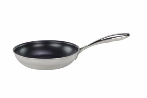 TUXCLAD Fry Pan, 12", (11.8125" x 11.8125" x 1.9375"H - O.A.), triply, stainless steel, non-stick coating, rivetless ergonomic hollow stainless steel handle , NSF (Refer to Tuxton.com for full Warranty policy) Products that feature DuraTux® Nonstick Coating contain PTFE for non-stick properties. For PFAS regulatory information, visit www.tuxton.com/pfas