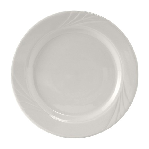 Plate, 9-3/4" dia., round, wide rim, embossed, microwave & dishwasher safe, oven proof, fully vitrified, lead-free, TuxCare®©, Healthcare, Sonoma, Porcelain White