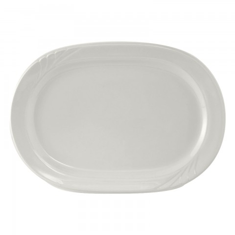 Racetrack Platter, 10-3/8" x 7-1/2", oblong, wide rim, embossed, microwave & dishwasher safe, oven proof, fully vitrified, lead-free, TuxCare®©, Healthcare, Sonoma, Porcelain White