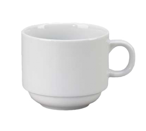 Cup, 8 oz., 3", with handle, stackable, polished foot, porcelain, bright white, Premium, Euro Collection, Alpine, Blueberry (fits AL-2)
