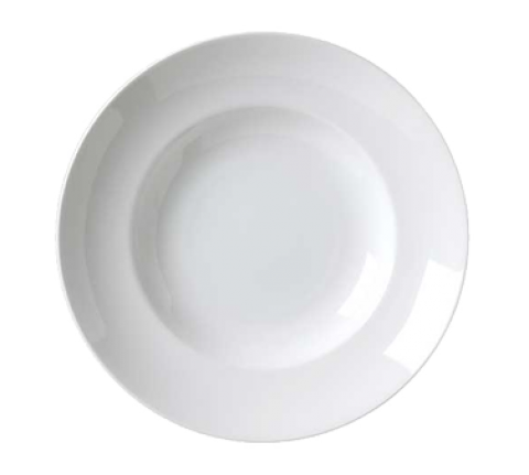 Pasta Bowl, 21 oz., 12" dia., round, deep, with rim, polished foot, porcelain, bright white, Premium, Euro Collection, Alpine, Daisies