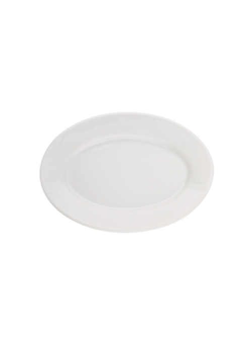 Platter 12-1/2”, oval, wide rim, rolled edge, porcelain, bright white, Argyle Collection, Cash ’N Carry (priced per dozen, shrink wrapped in packs of 6)