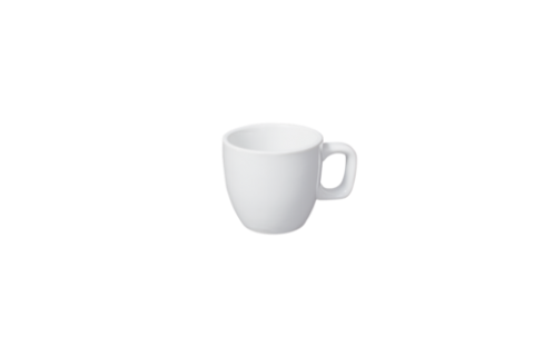 Cup, 7 oz, 3” tall, with handle, rolled edge, porcelain, bright white, Argyle Collection, Cash ’N Carry (fits ARG-2) (priced per dozen, shrink wrapped in packs of 6)