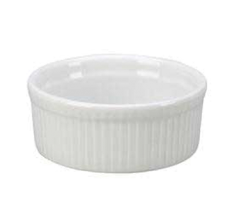 Soufflé Bowl, 10 oz., 4-1/2" dia., round, fluted, rolled edge, bright white, Universal, Market Buffet Collection