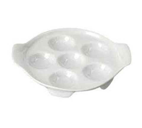 Escargot Dish, 6-5/8" dia., round, 6 compartments, with handles, rolled edge, bright white, Universal, Market Buffet Collection