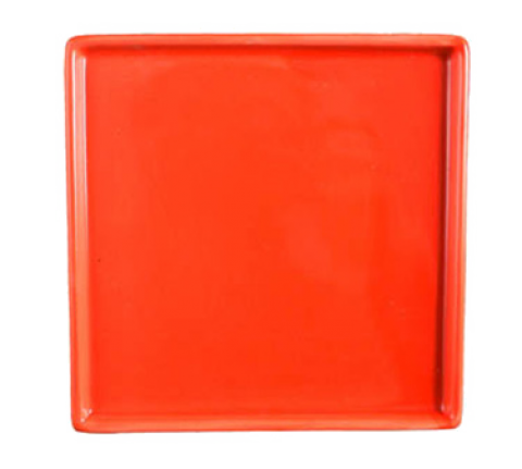 Plate, 5-5/8", square, flat, rolled edge, red orange, glossy finish, Universal, Ventana Collection