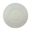 Dish, 12-1/2" dia., round, scroll detailed rim, rolled edge, bright white, glossy finish, Universal, Ventana Collection