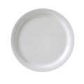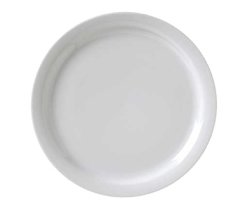 Plate, 10-1/2" dia., narrow rim, rolled edge, porcelain, bright white, Universal, Catalina Collection