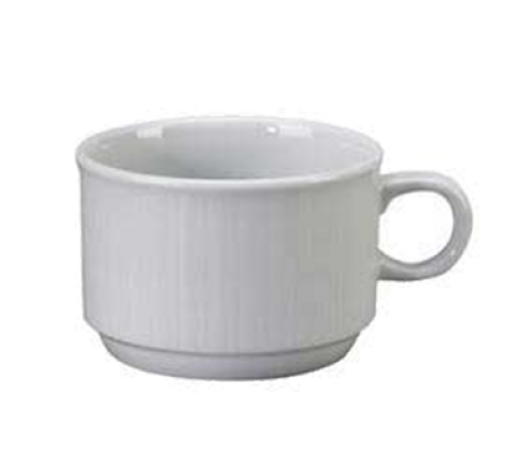 Cup, 7 oz., 3-1/8", with handle, stackable, embossed, polished foot, porcelain, bright white, Premium, Euro Collection, Crystal Bay (fits CB-2)